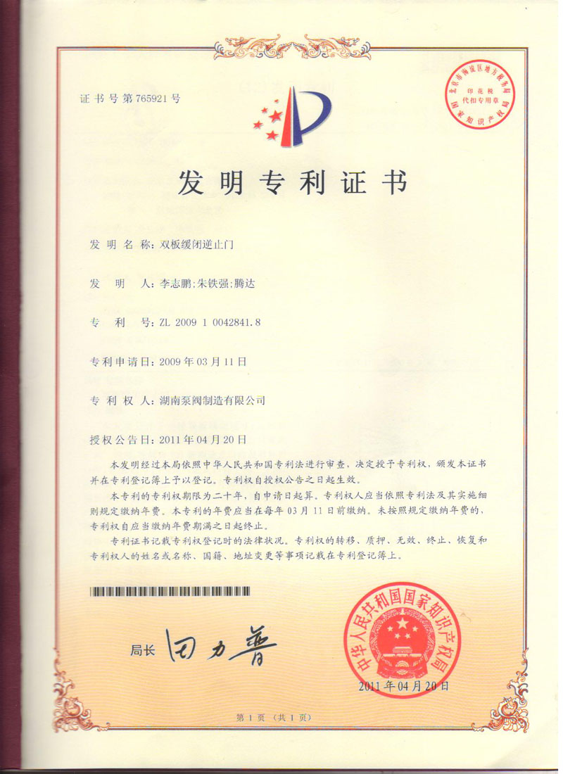 双板缓闭逆止门(发明)硬密封零磨损旋切阀(发明)